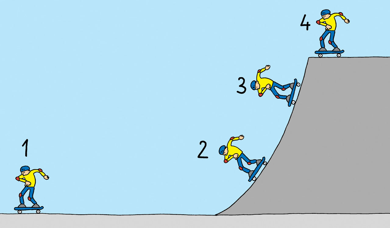 Dok tijelo slobodno pada, njegova se gravitacijska potencijalna energija povećava, a kinetička se energija smanjuje.