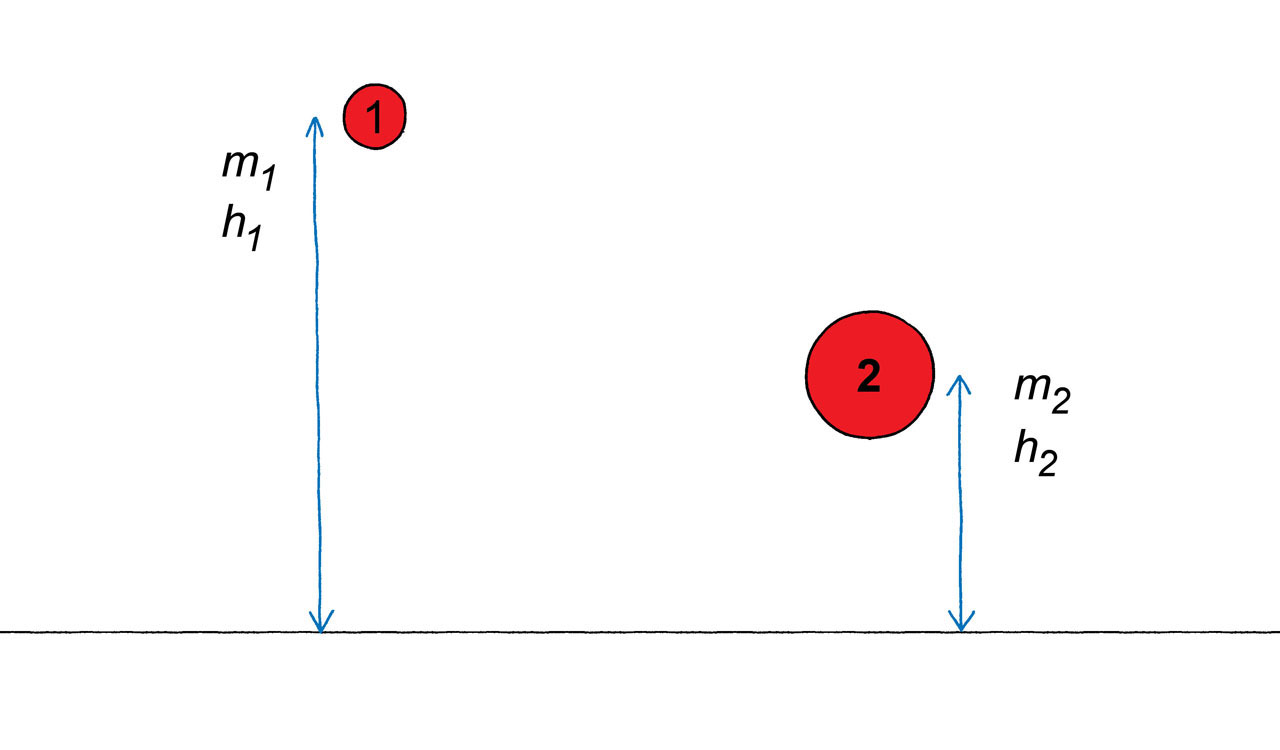 da bi obje kugle imale jednaku gravitacijsku potencijalnu energiju?