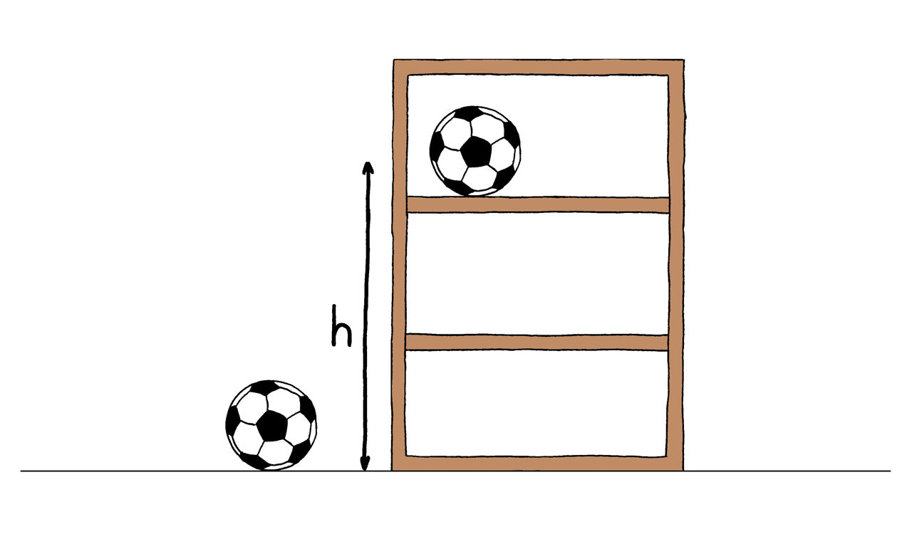 Kolika je gravitacijska potencijalna energija lopte na polici?