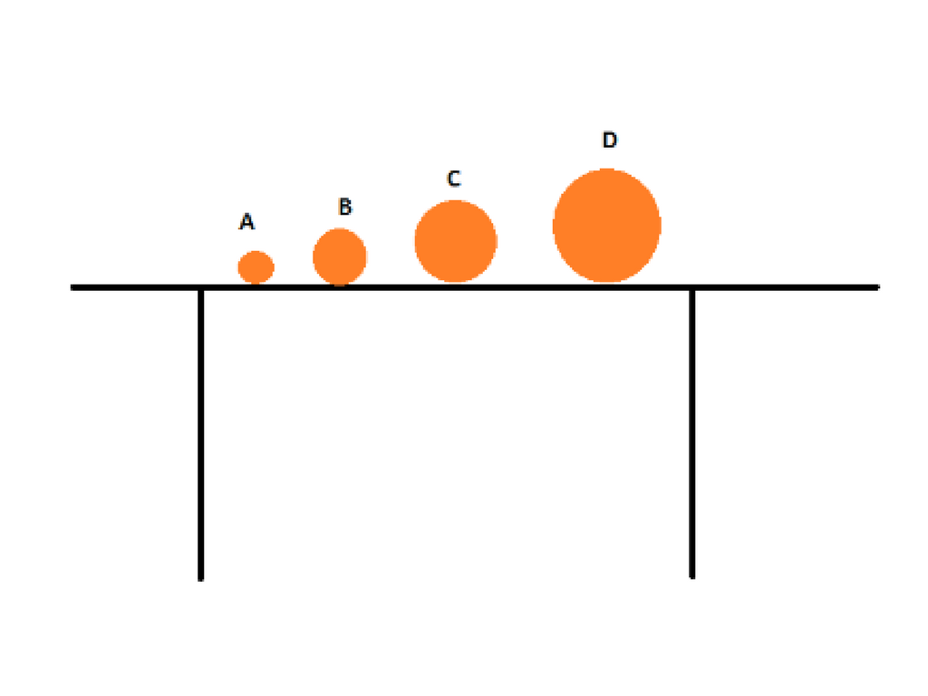 Kuglice jednakog materijala, a različitog volumena, nalaze se na stolu. Pri podizanju koje kuglice je obavljen najveći rad?