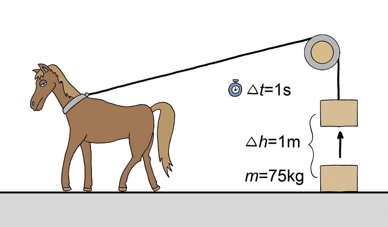 Iznimno dopuštena mjerna jedinica za snagu naziva se konjska snaga, znak Ako stroj podigne tijelo mase kilograma na visinu od metra u vremenu od sekunde, tada taj stroj ima snagu od KS. Pri podizanju tijela gravitacijska potencijalna energija na visini od iznosi: