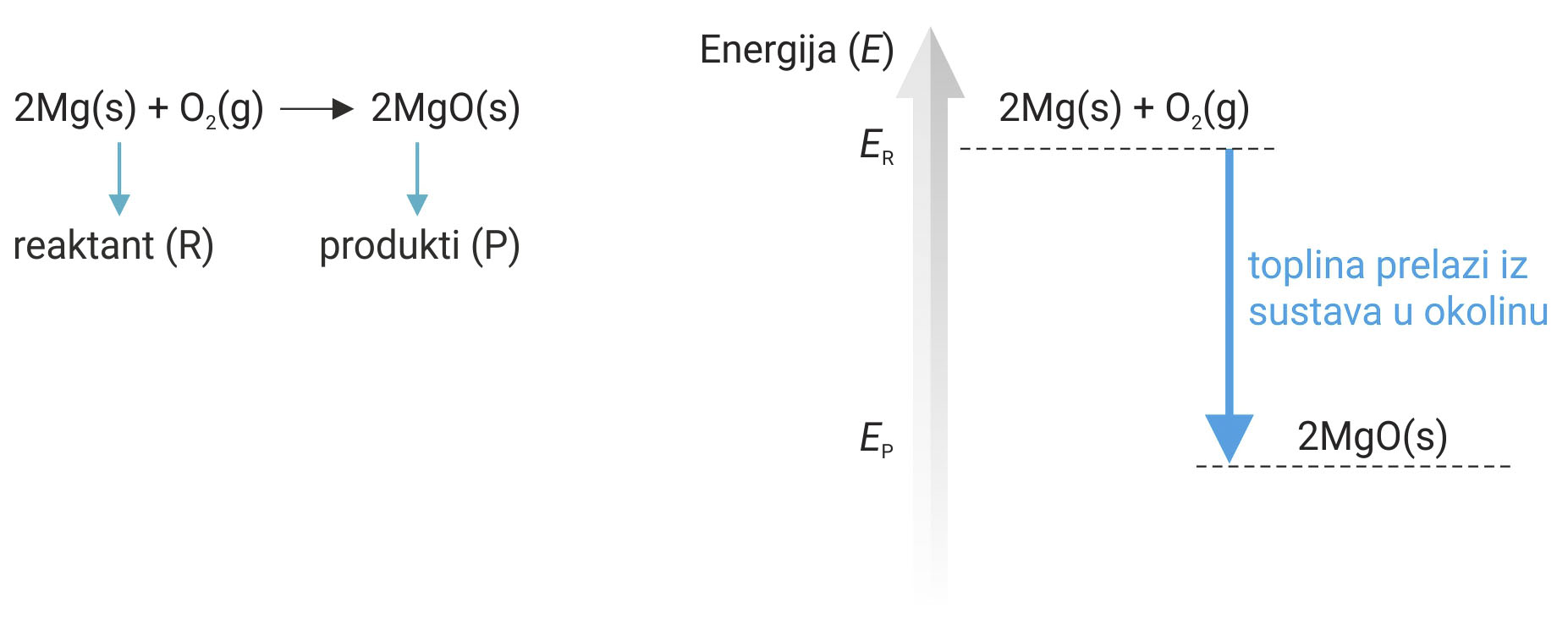 Ovu egzotermnu promjenu prikazujemo i energijskim dijagramom.