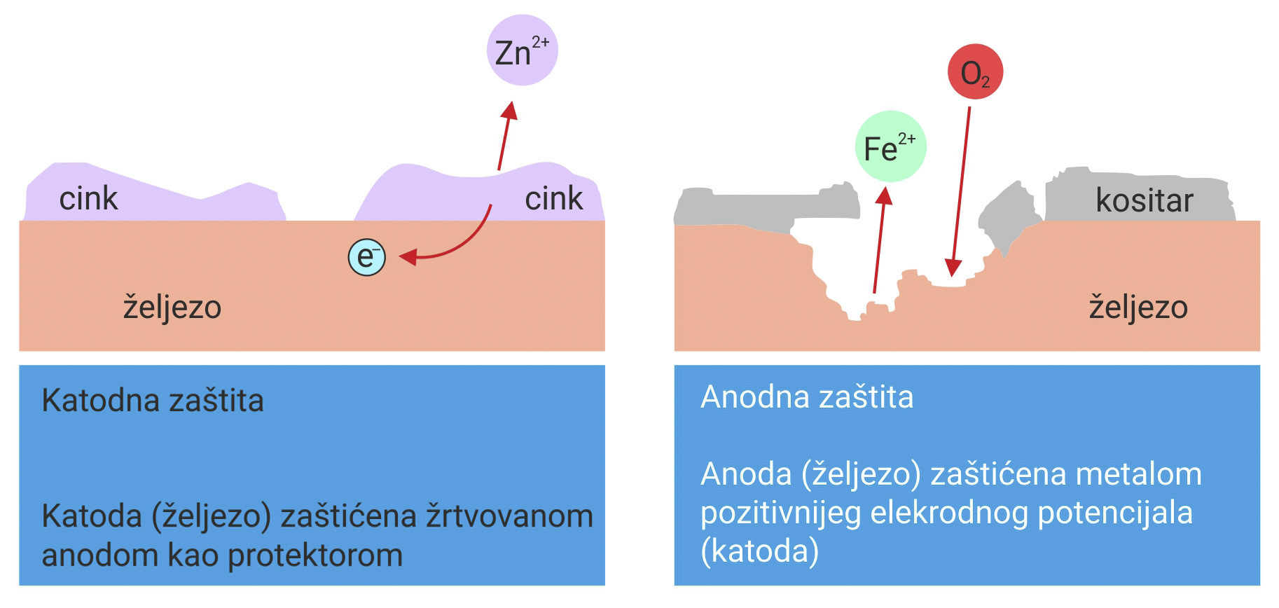 Prikazana zaštita se zasniva na namjerno napravljenom galvanskom članku u kojemu se anoda žrtvuje da bi se zaštitila katoda.