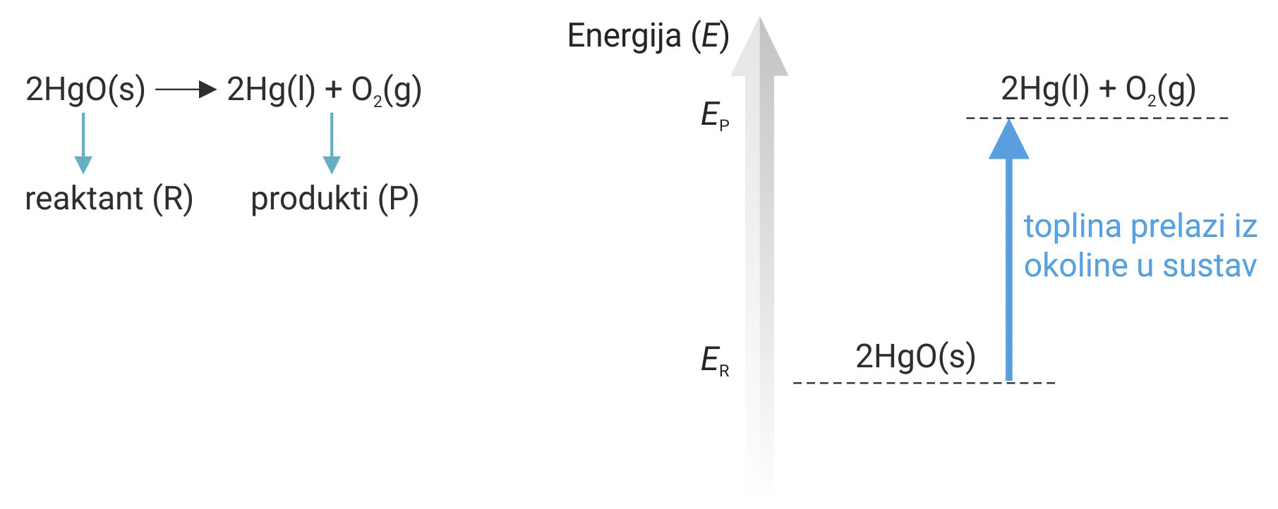 Ovu endotermnu promjenu prikazujemo i energijskim dijagramom.
