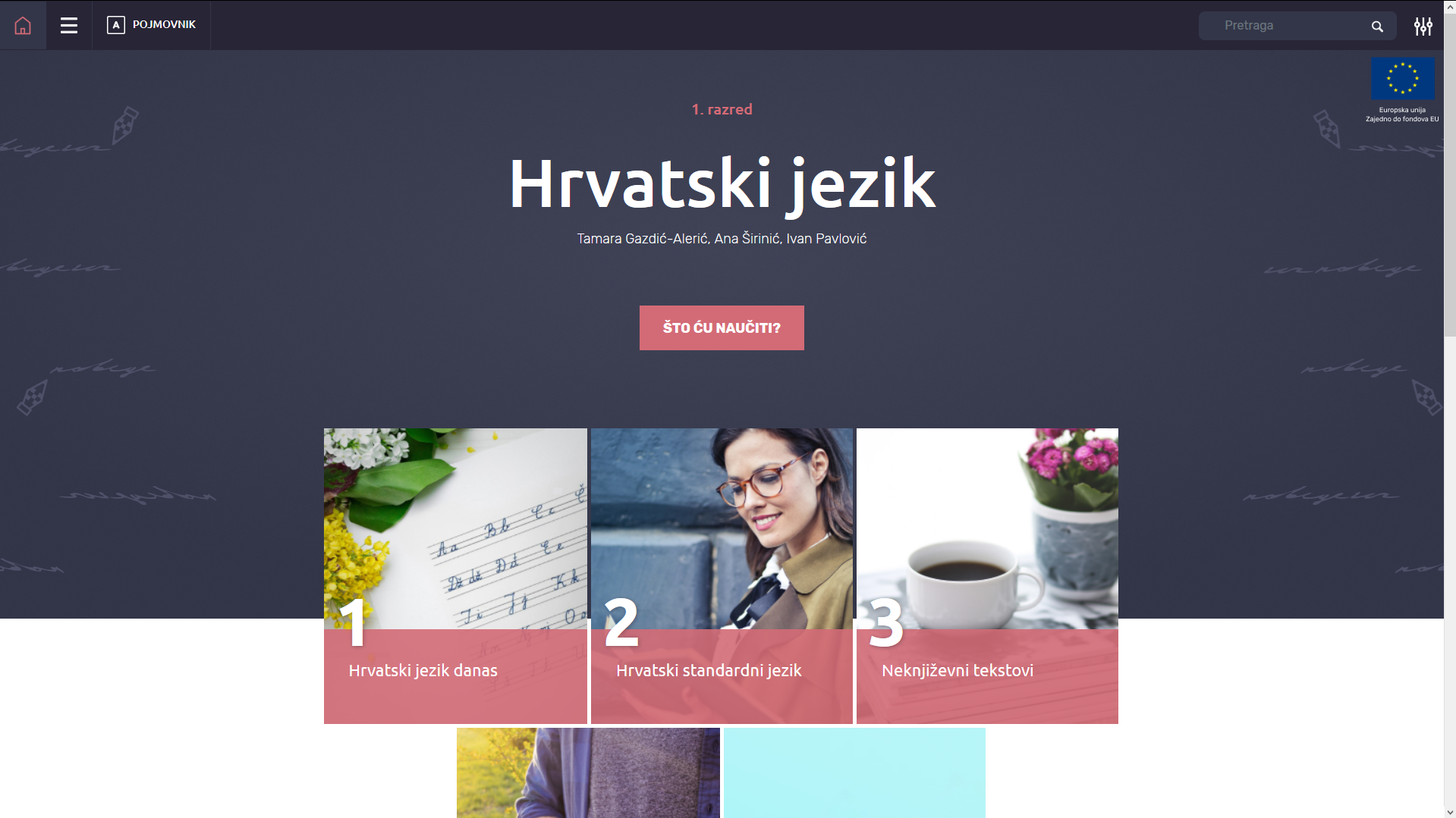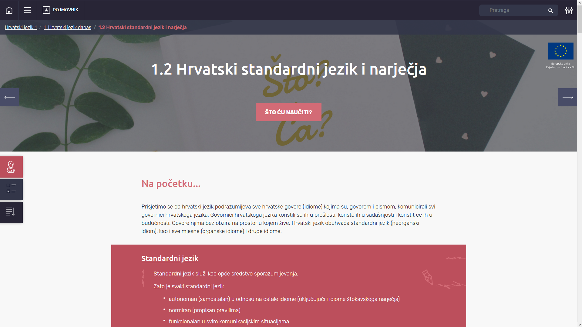 Na vrhu svake stranice u strukturi sadržaja, bez obzira na to radi li se o cijelom digitalnom sadržaju za pojedini razred, modulu ili jedinici, nalazi se gumb „Što ću naučiti“ gdje se nalazi popis obrazovnih ishoda za taj digitalni obrazovni sadržaj, modul ili jedinicu.
