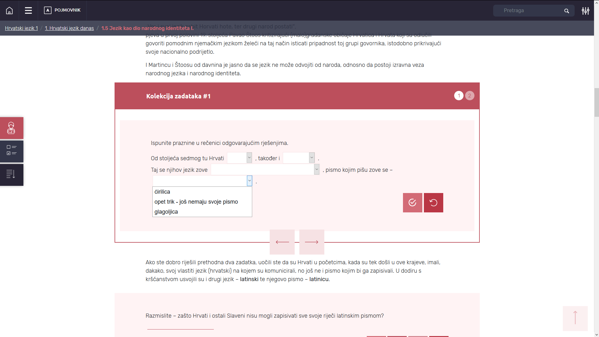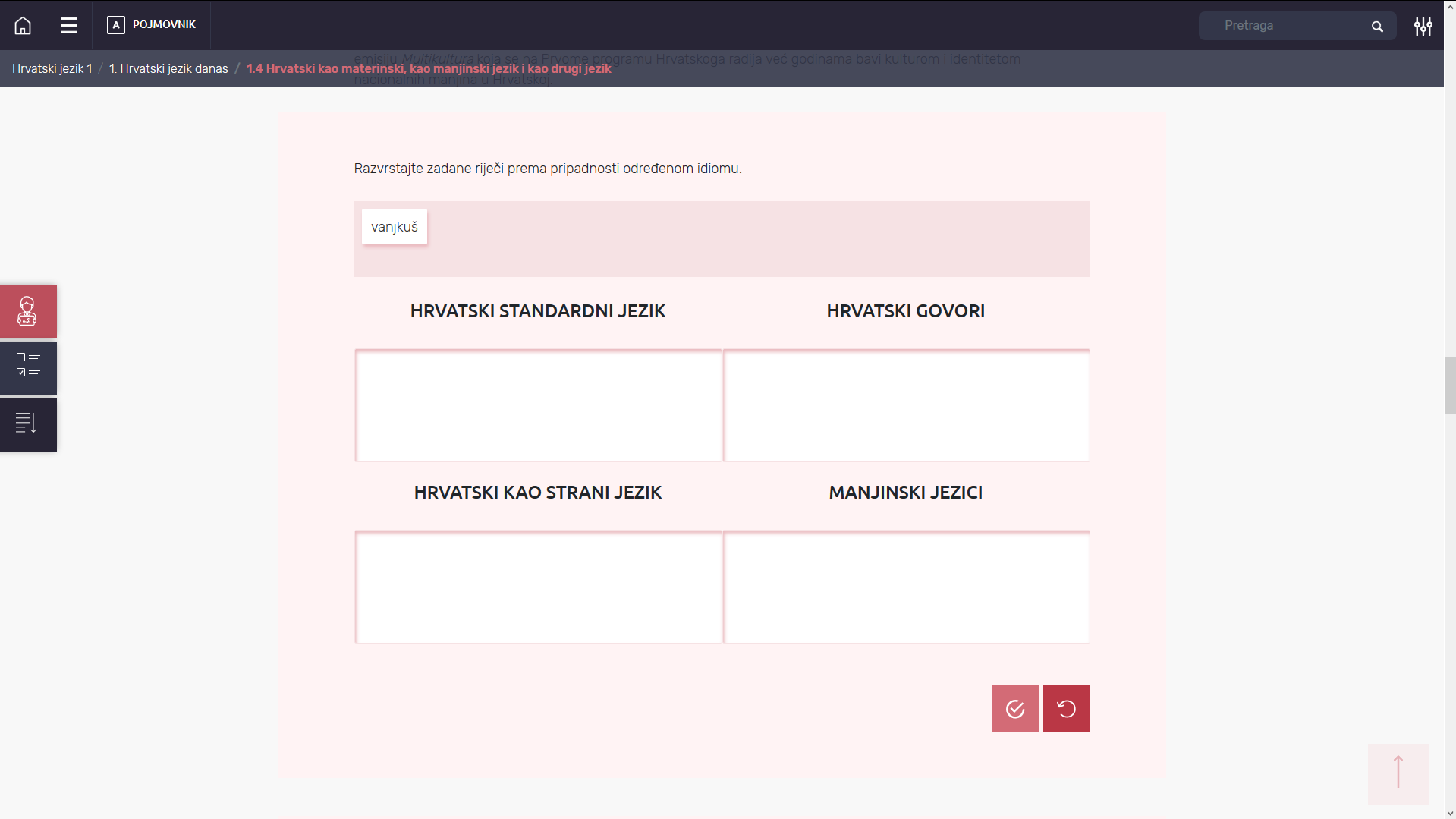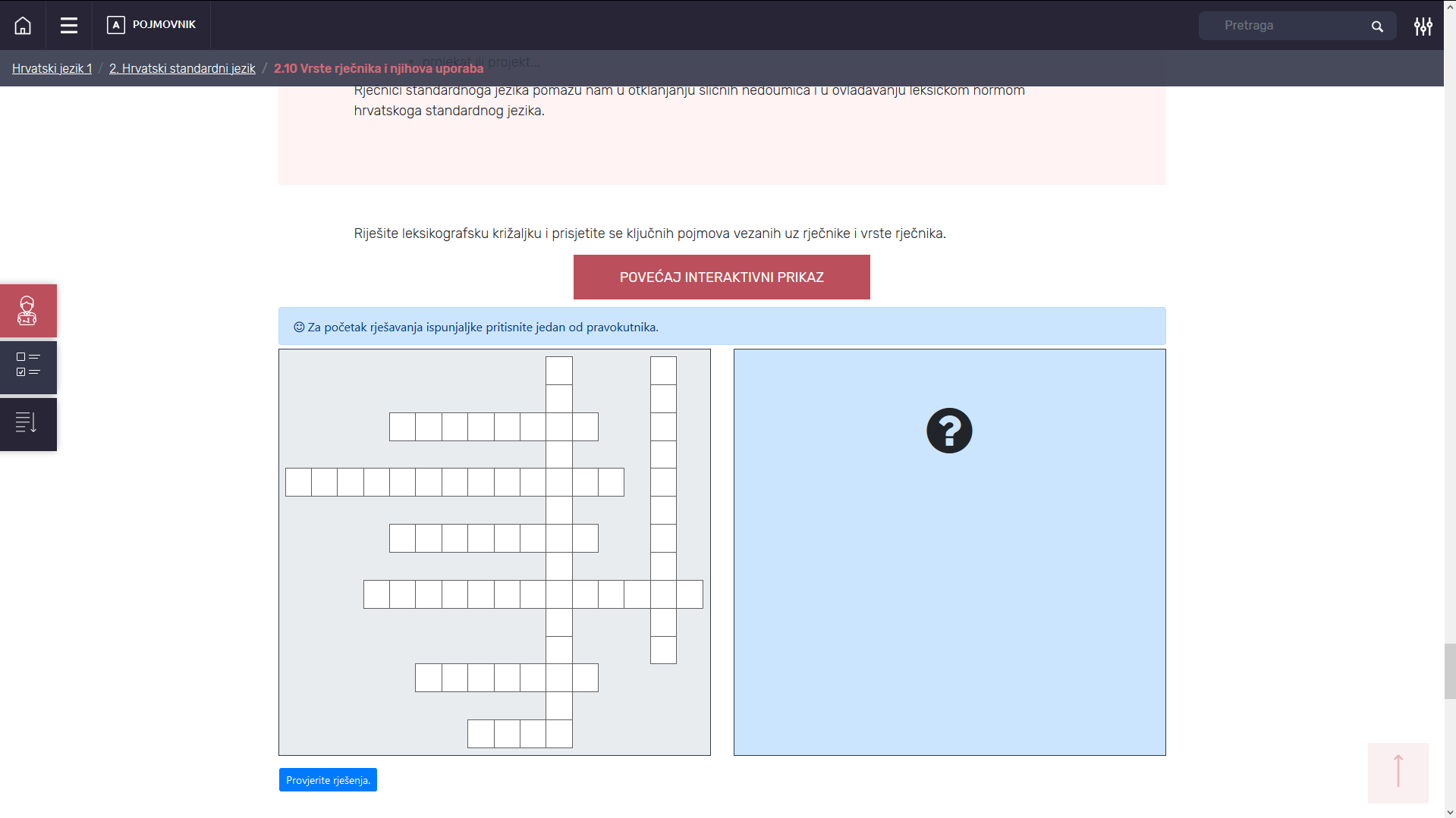 Postoje i neke složenije interaktivne vježbe i zadatke. Sadrže različite interaktivne igre, slagalice i slično. Iznad takvih vježbi nalazi se gumb kojim učenik može povećati takvu vježbu na pun ekran kako bi korištenje vježbe bilo što lakše, preglednije i ugodnije.