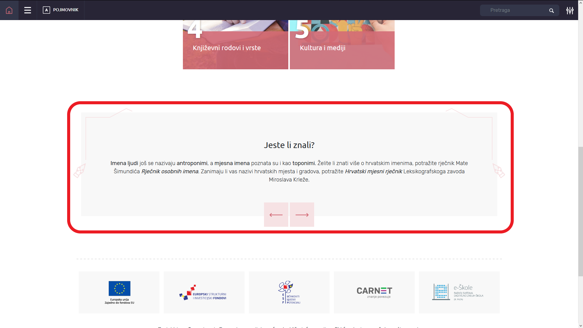 Osim popisa modula, odnosno jedinica, na dnu naslovnica digitalnog obrazovnog sadržaja i modula, prikazuju se zanimljivosti koje su vezane uz teme tog sadržaja ili modula.