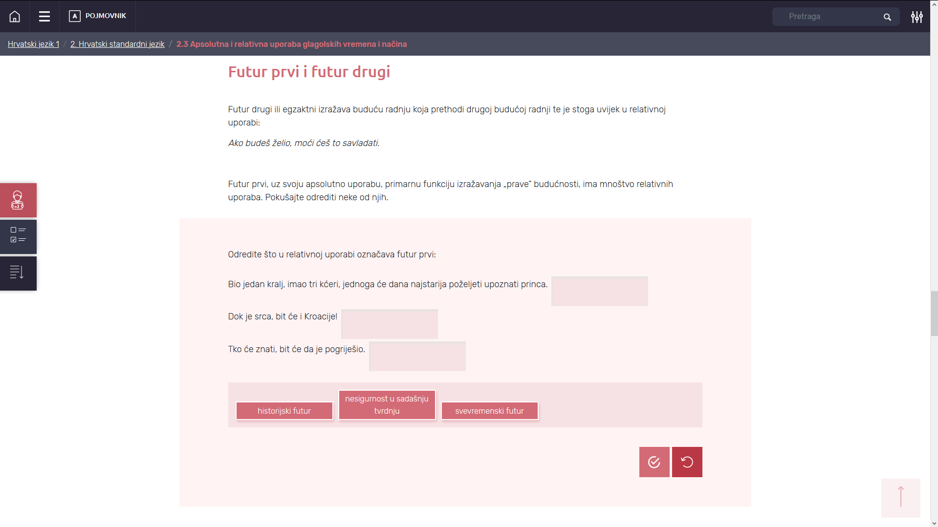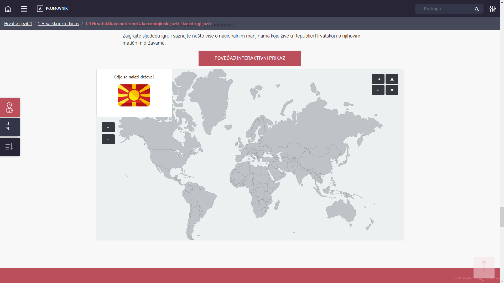 Postoje i neke složenije interaktivne vježbe i zadatke. Sadrže različite interaktivne igre, slagalice i slično. Iznad takvih vježbi nalazi se gumb kojim učenik može povećati takvu vježbu na pun ekran kako bi korištenje vježbe bilo što lakše, preglednije i ugodnije.