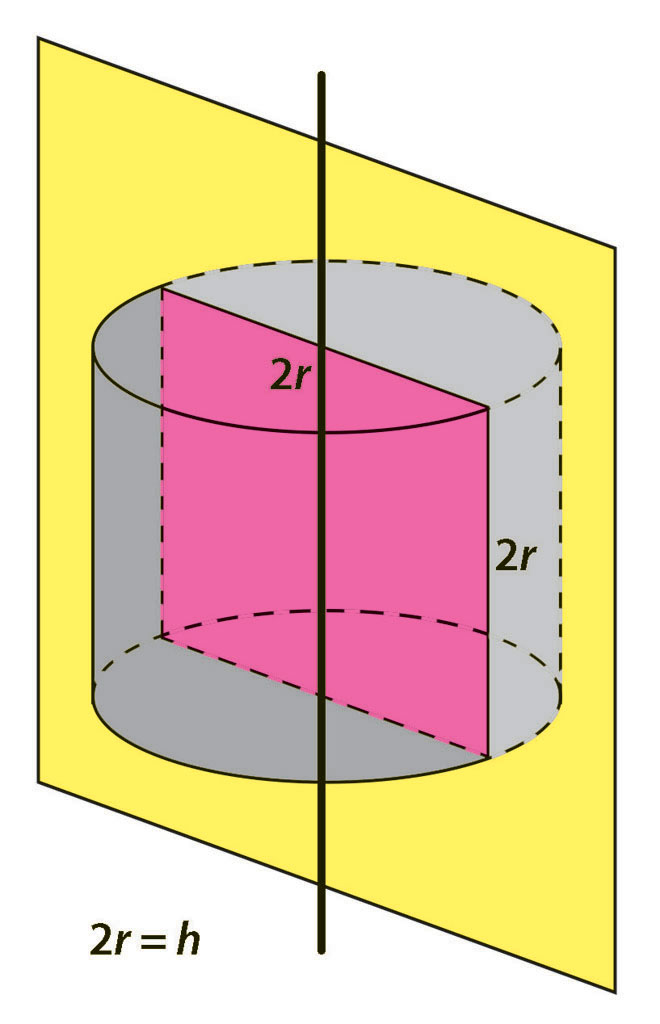 Osni je presjek valjka pravokutnik kojemu je jedna stranica visina valjka, a druga