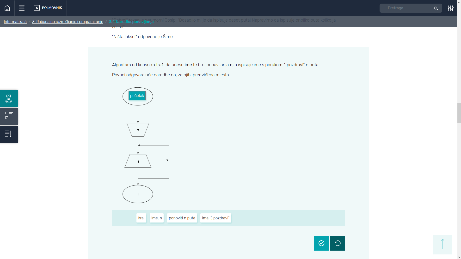 • Povlačenje odgovora na zadano mjesto u tekstu