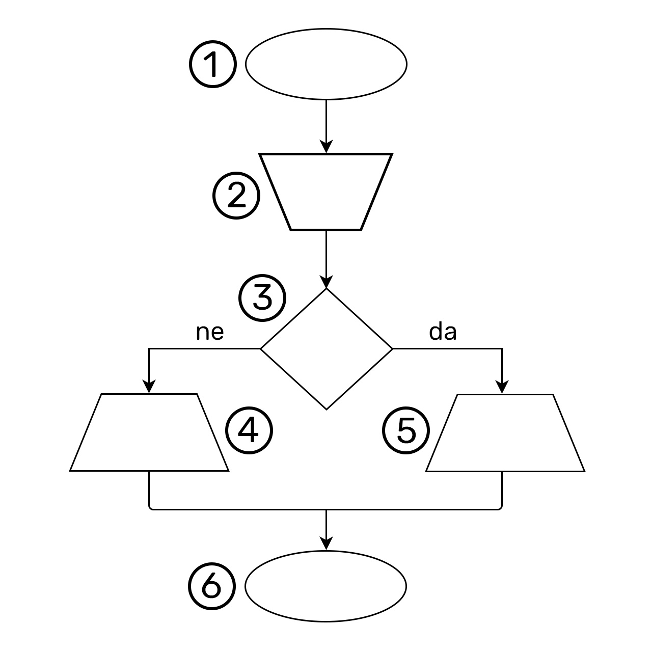 Druga je situacija kada odlučujemo hoće li algoritam ići u jednom ili u drugom smjeru. Tada zapisujemo if i else dijelove programskog koda.