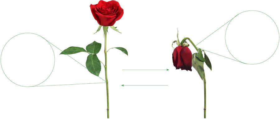 Pogledajte dvije ruže u sljedećem zadatku i pretpostavite kako izgledaju stanice stabljika tih ruža te prenesite stanice u za to predviđena mjesta. Zatim pročitajte tekst unutar zadatka o tome što se dogodilo s tim stanicama. Usporedite što se događa s biljnim, a što sa životinjskim stanicama u otopinama različitih koncentracija.