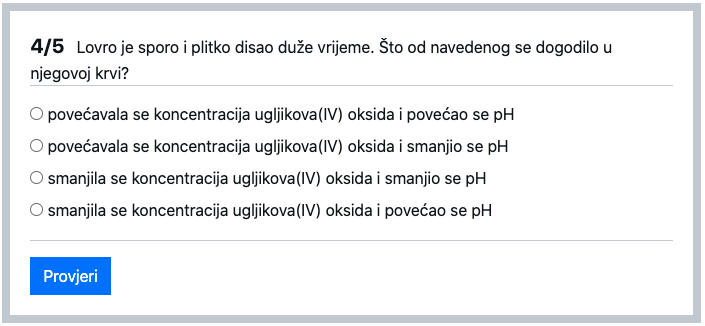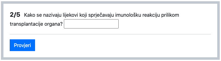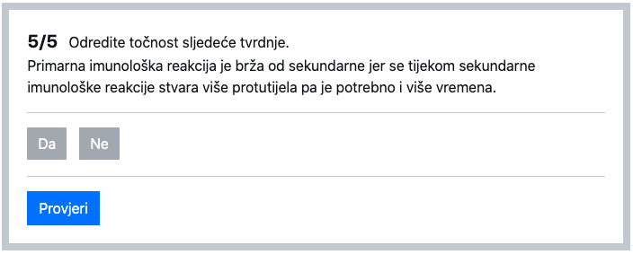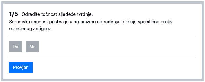 Interaktivni kvizovi od pet pitanja s različitim tipovima zadataka mogu se koristiti za provjeru usvojenosti gradiva. Za svaki odgovor omogućena je provjera točnosti.