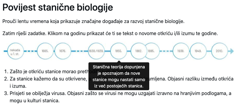 interaktivna lenta vremena koja prikazuje povijest stanične biologije