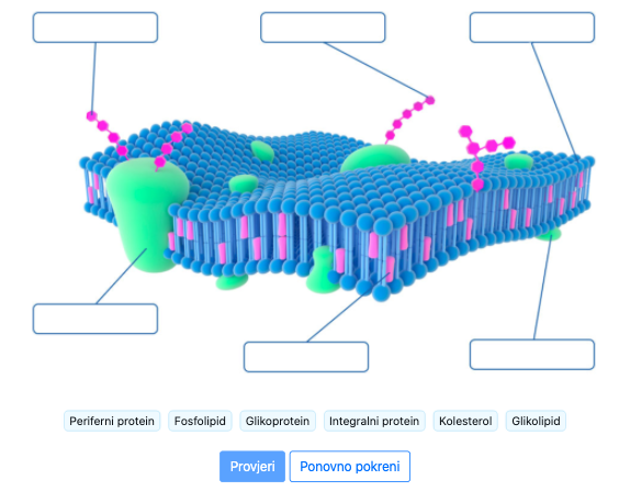 Interaktivni zadatak u kojem učenici označavaju dijelove stanične membrane