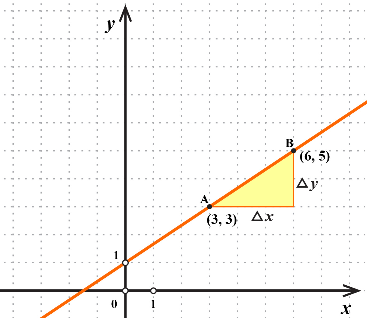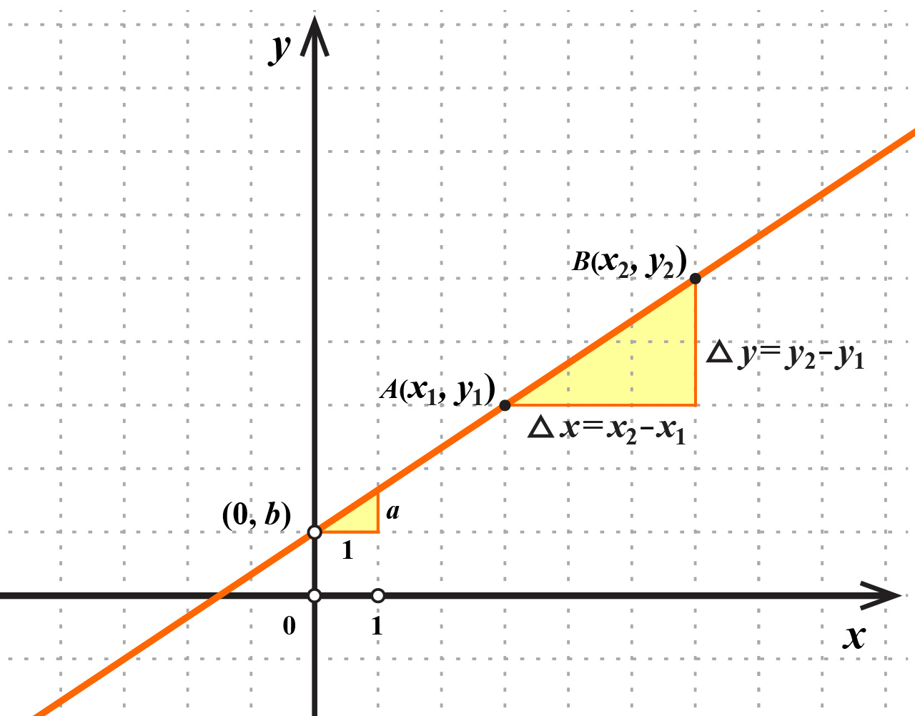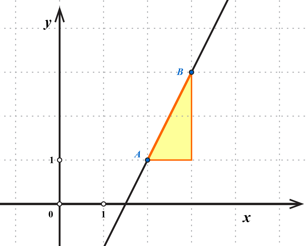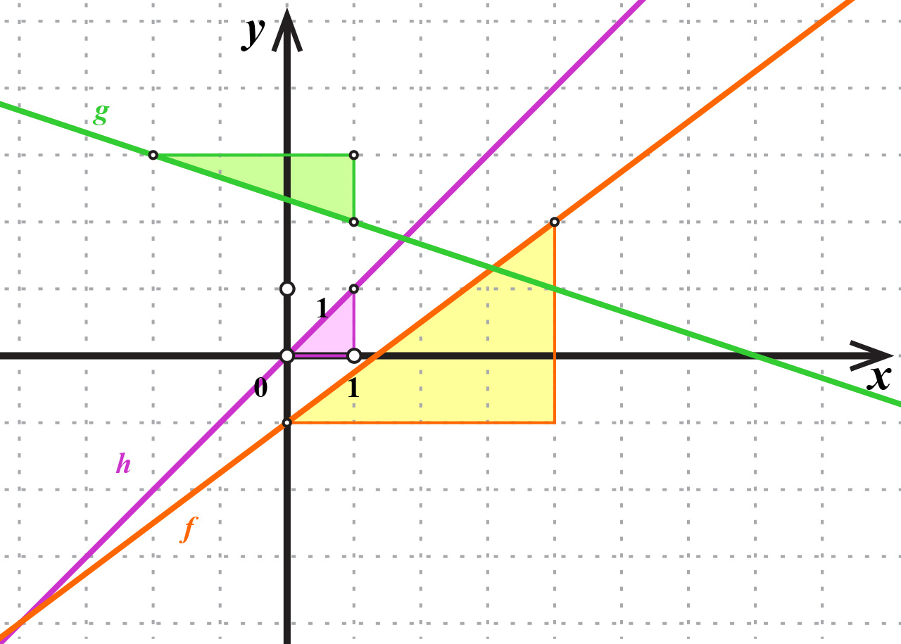 To znači da svi takvi trokuti dobro interpretiraju nagib ili koeficijent smjera linearne funkcije. Obično upotrebljavamo trokut kojemu je jedan vrh u sjecištu grafa s osi ordinatom.