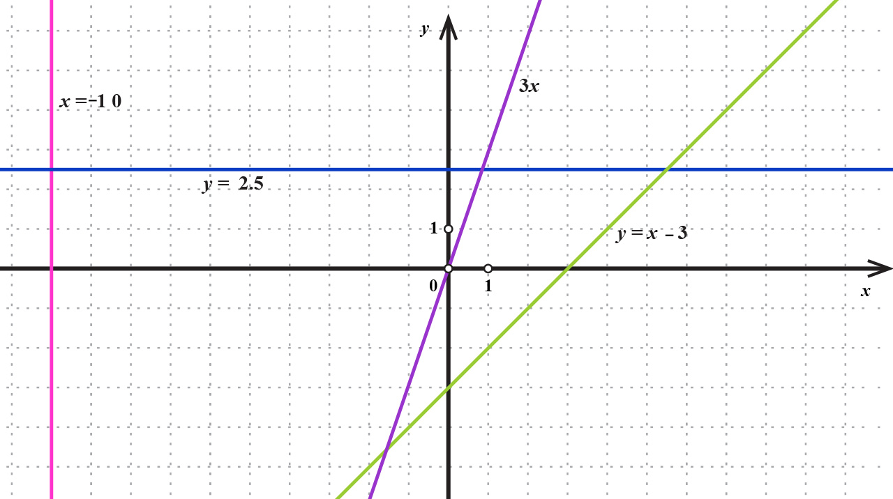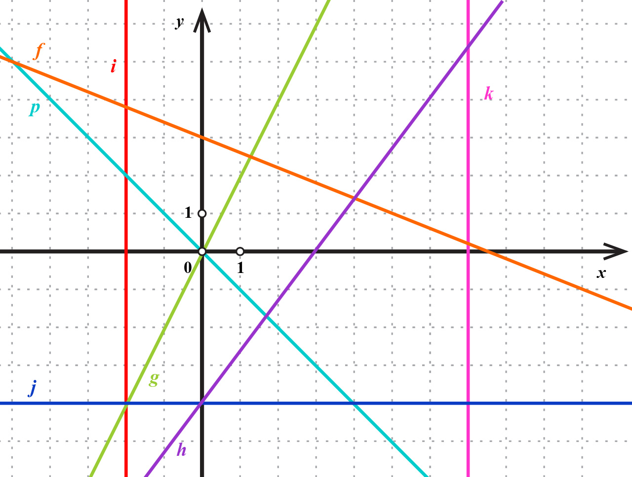 Koji su od sljedećih pravaca grafovi linearne funkcije, a koji nisu? Razvrstajte ih u te dvije skupine.