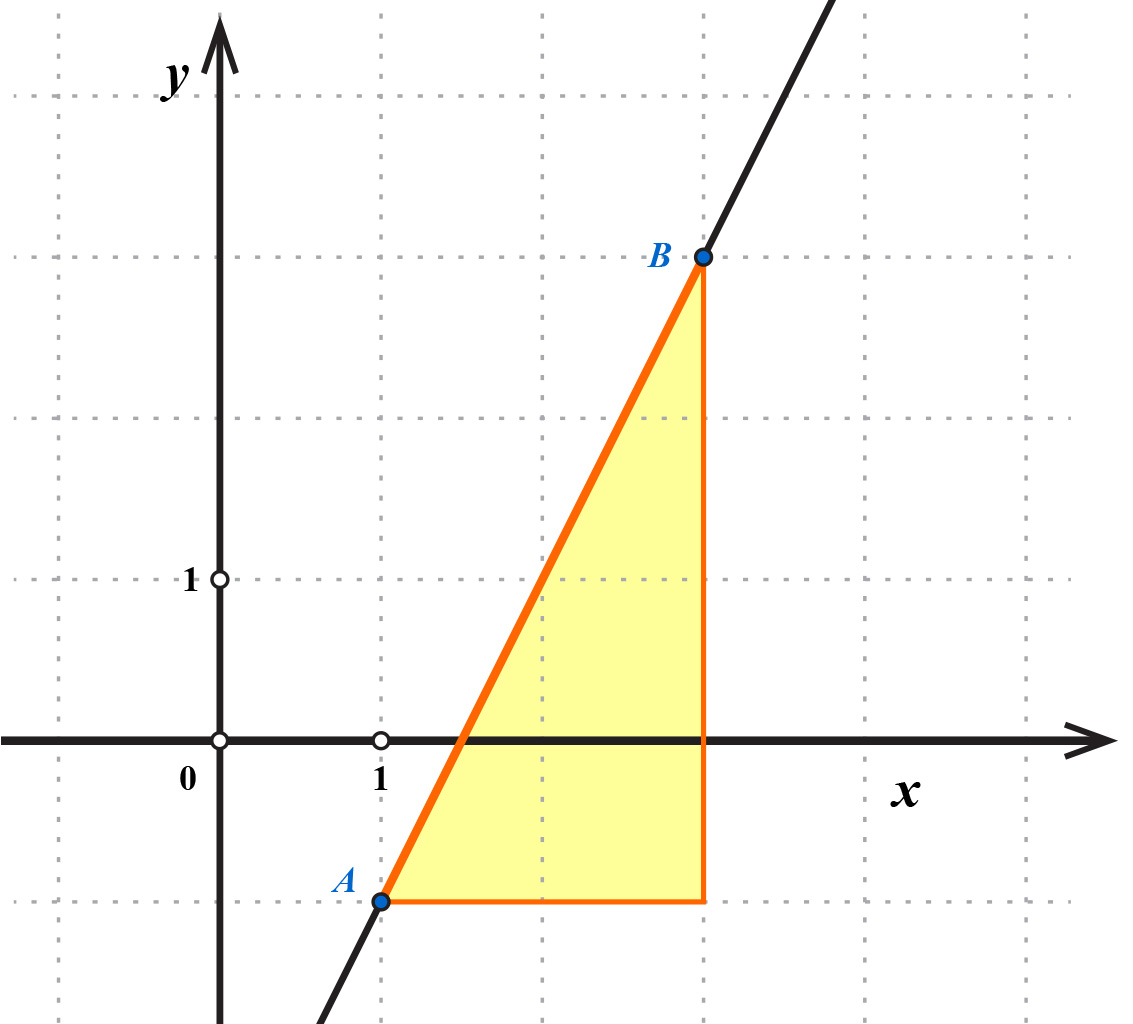 Nagib grafa linearne funkcije možemo predočiti pravokutnim trokutom kojemu su vrhovi u točkama s koordinatama: