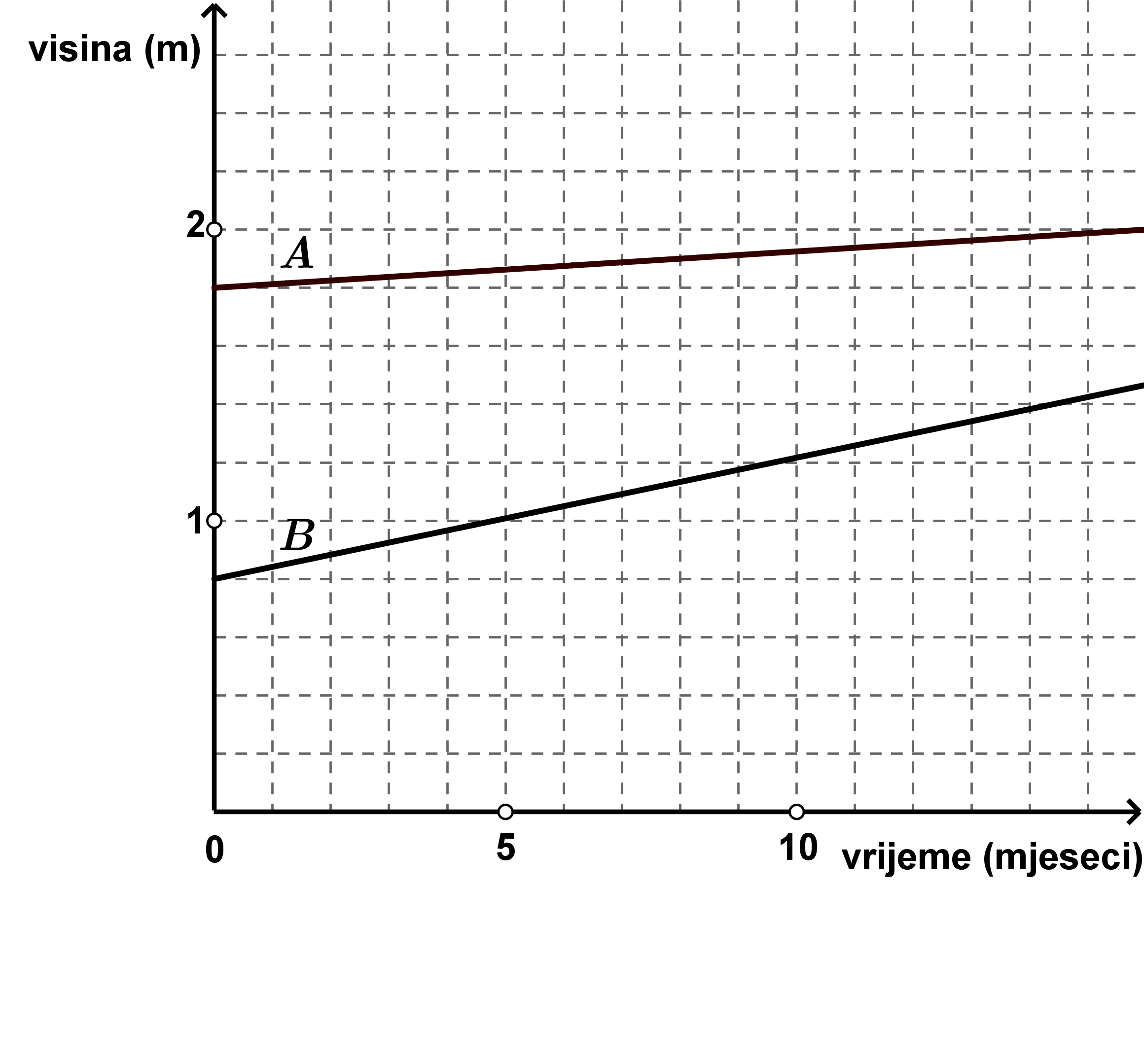 centimetara za dvije godine. Podatke o visini stabala u ovisnosti o proteklom vremenu od početka promatranja prikazali su u sljedećem koordinatnom sustavu.