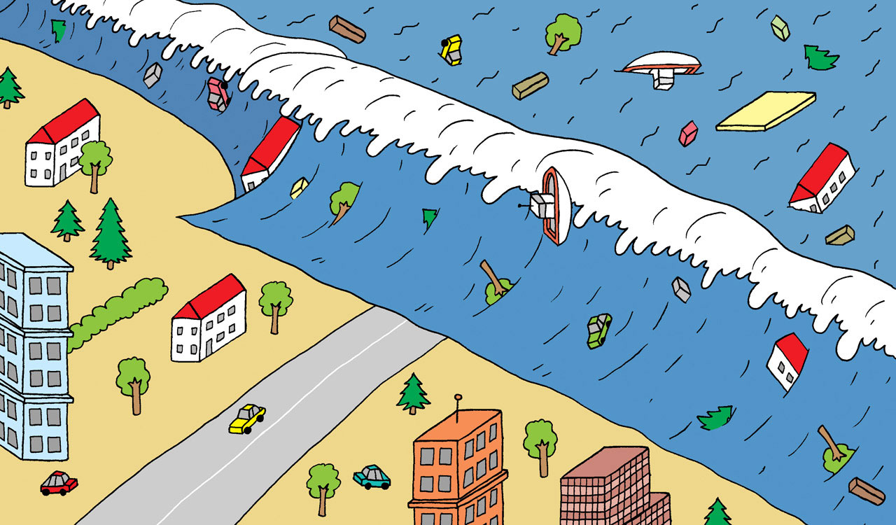 Cunami su valovi koji nastaju kao posljedica potresa ispod površine mora. Oslobođena energija potresa širi se kao val u dubinama vode, često male amplitude, ali velike brzine. Više o cunami valovima u cjelini Valovi se lome.