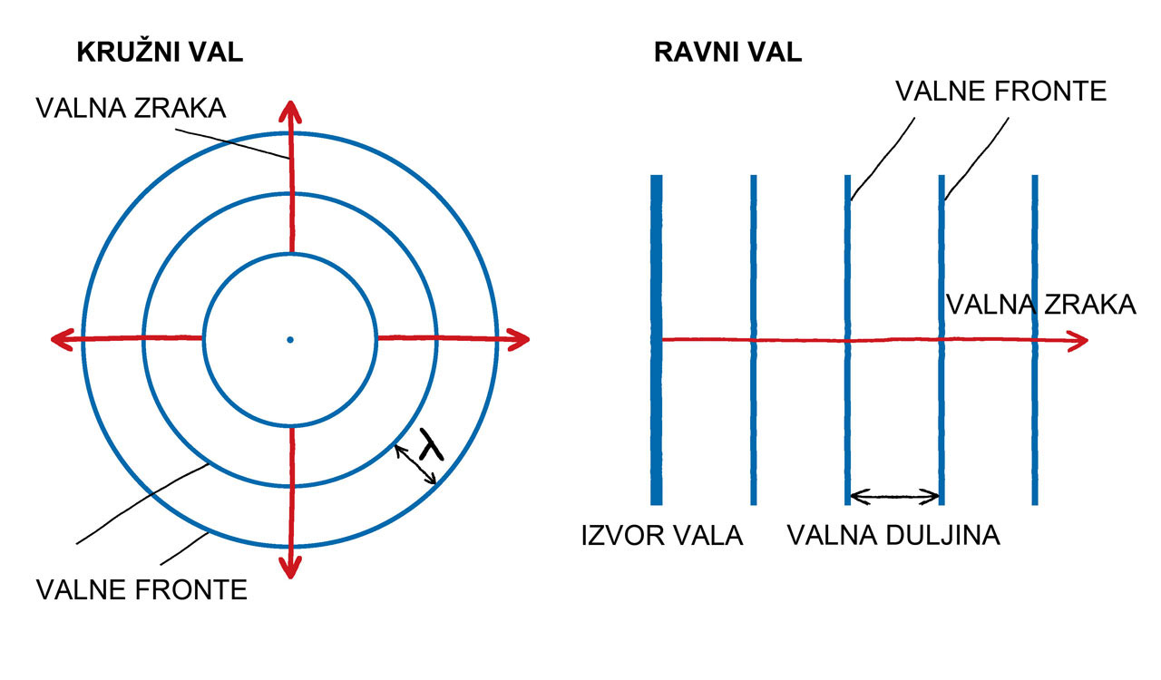 Što su koncentrične kružnice koje vidimo kod kružnog vala odnosno pruge kod ravnog vala?